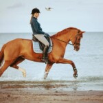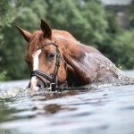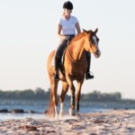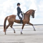 Ganz wichtig ist mir die Abwechslung zur Dressurarbeit zum Beispiel mit Stangen, oder das Reiten nur mit Halsring, um das Vertrauen zu stärken. Außerdem geht es oft ins Gelände, ans Meer oder aufs Stoppelfeld.