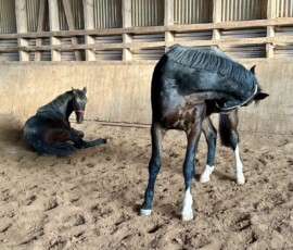 Am 21.Mai 2021 hat unsere Donauherz ihr erstes Hengstfohlen von Bon Courage zur Welt gebracht. Wir sind ganz begeistert von ihrer überaus umsichtigen Mutterrolle und finden den jungen Mann sehr gelungen.