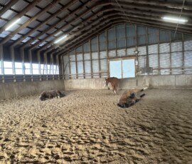 Unsere Pferde dürfen sich bei Frost in der Halle austoben und wälzen. Sie genießen das sichtlich.