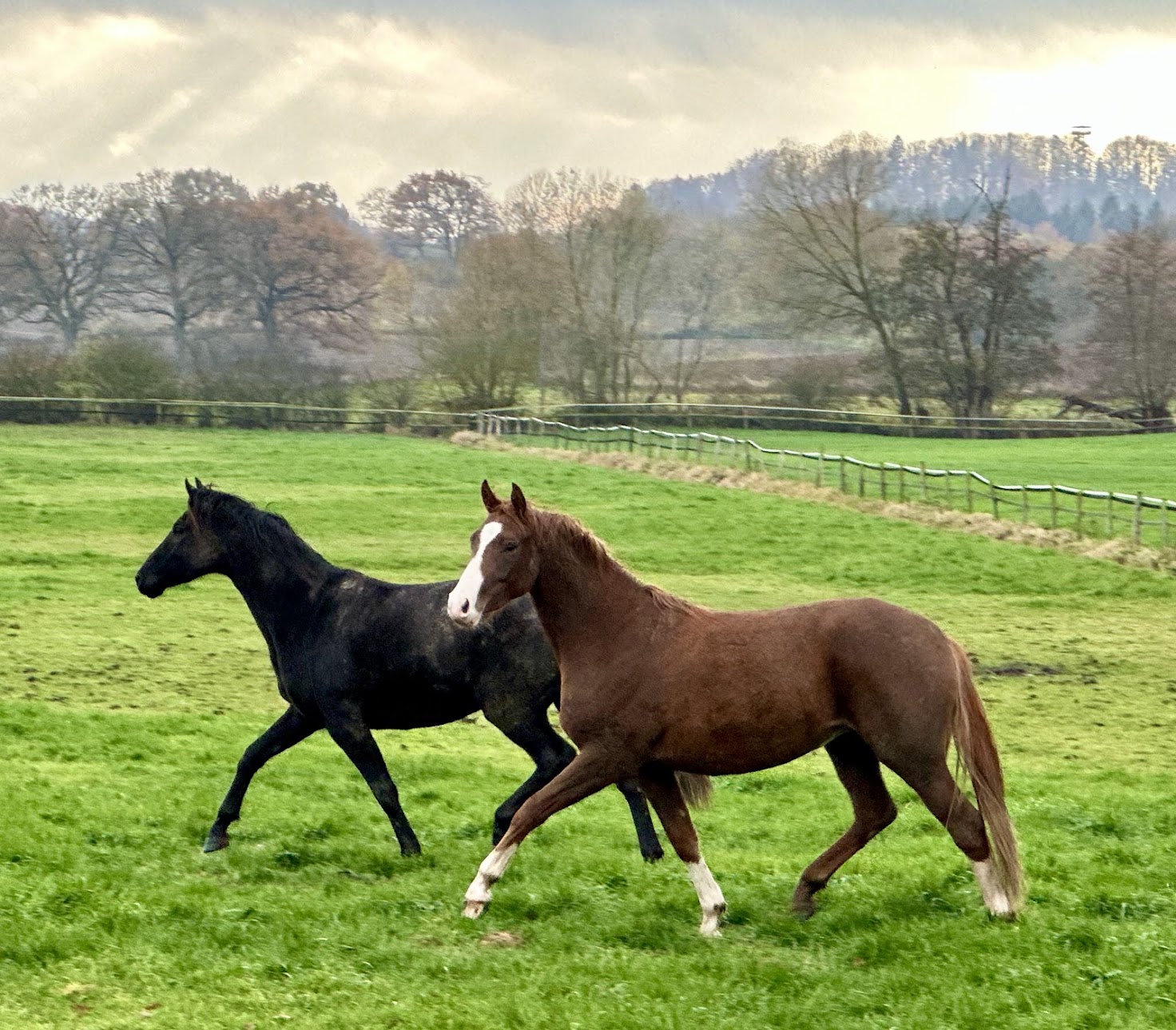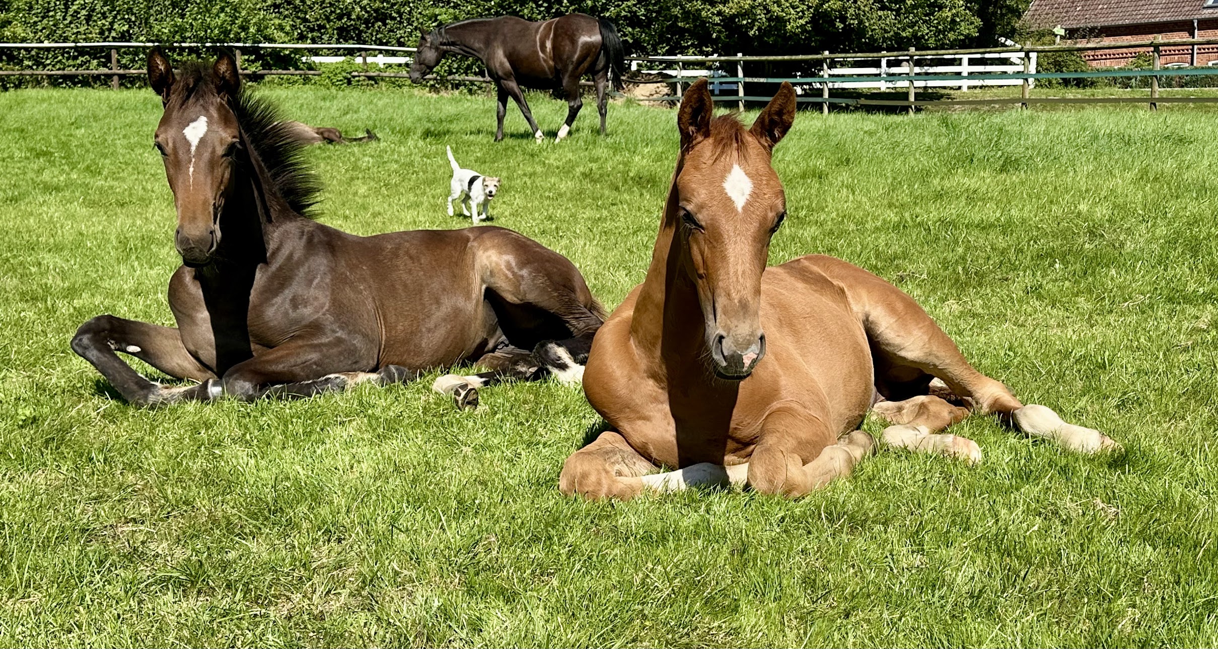 Unsere Fohlen, entspant auf der Weide, wunderschön festgehalten von Kirsten Siems.