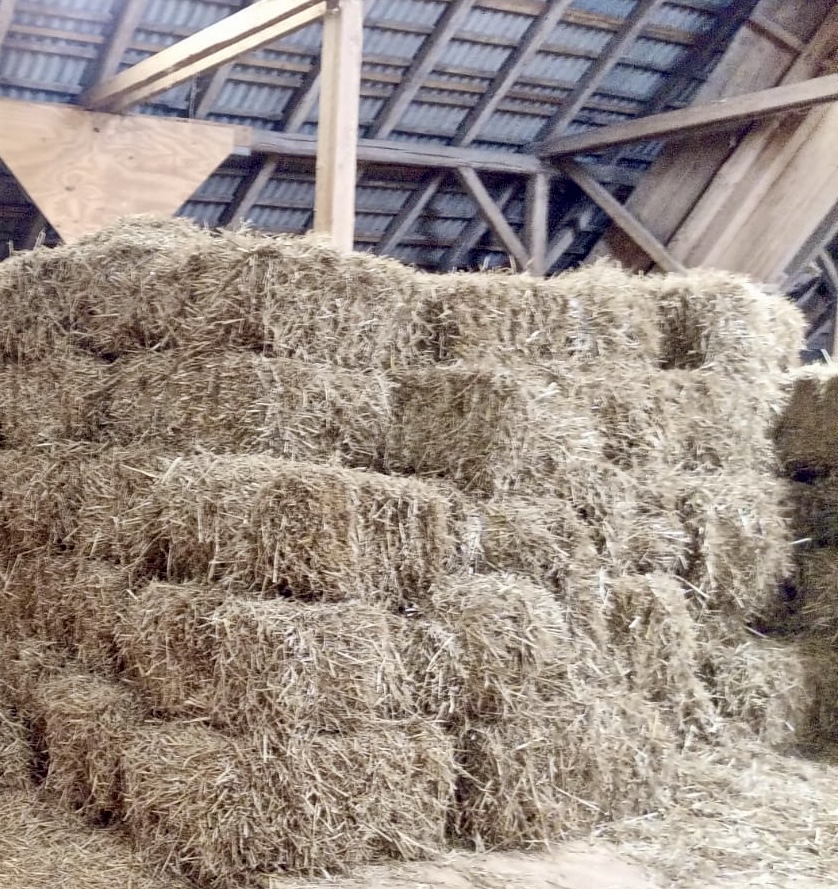 In diesem Jahr haben wir besonders viel Stroh einfahren können und sogar die kleinen Ballen gestapelt. Ganz lieben Dank an das unterstützende Team!!!! ( August)