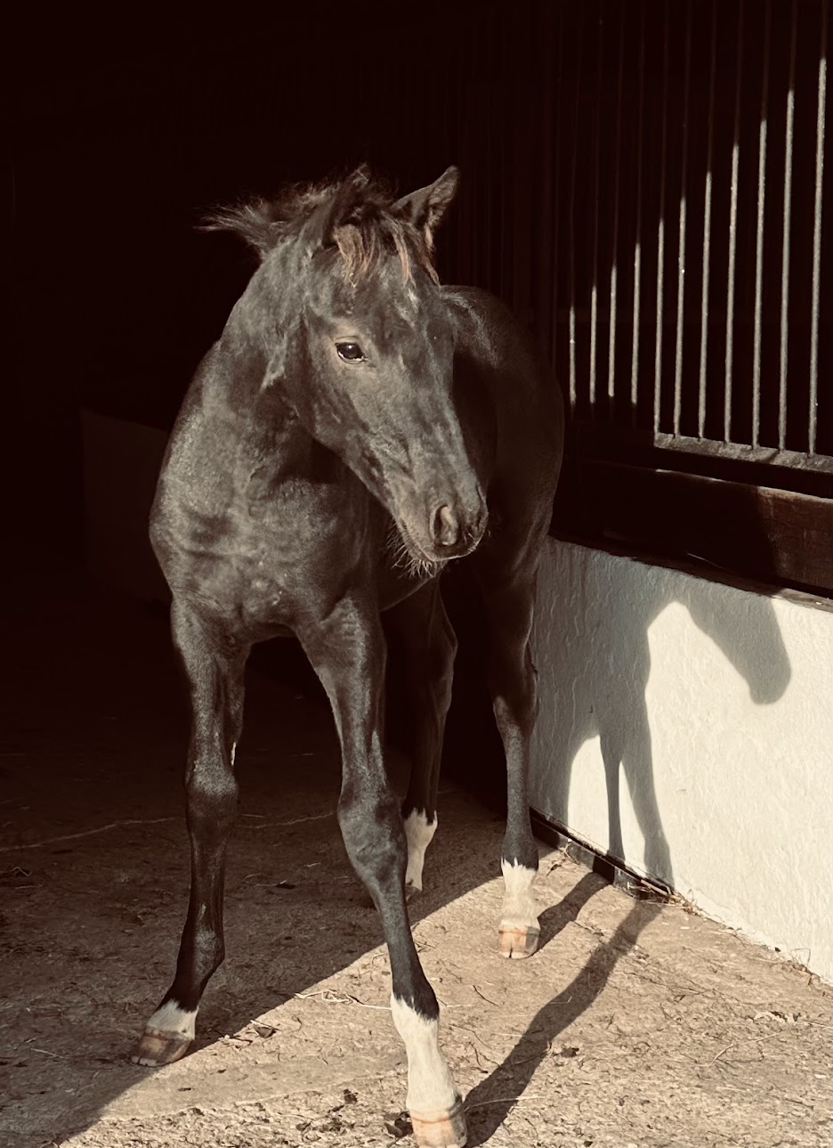 Unsere Donauherz hat am 15.05.2022 ein wunderschönes Rapphengstfohlen von Infantino zur Welt gebracht.