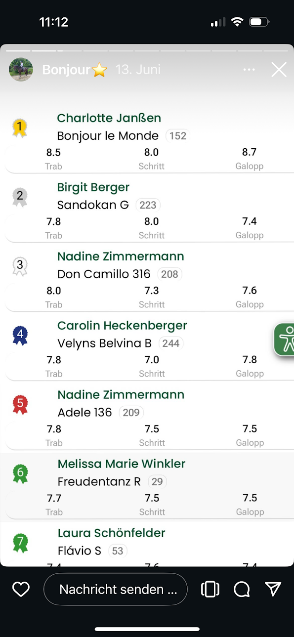 Am 01.06 konnten Quarterstar und ich uns in der M** mit über 67% an 2. Stelle und in der S* mit über 65 % an 7. Stelle platzieren.