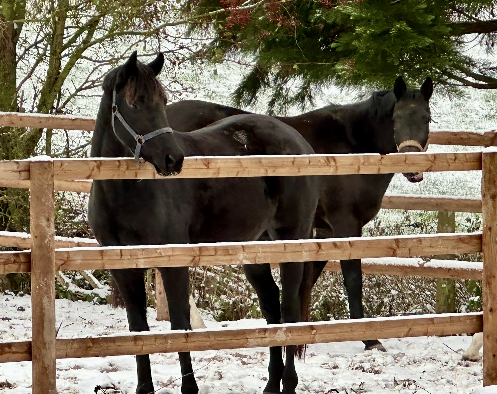 Zu Silvester sind die Pünktchenpferde lieber in den Stall gezogen um den Knallen zu entfliehen.