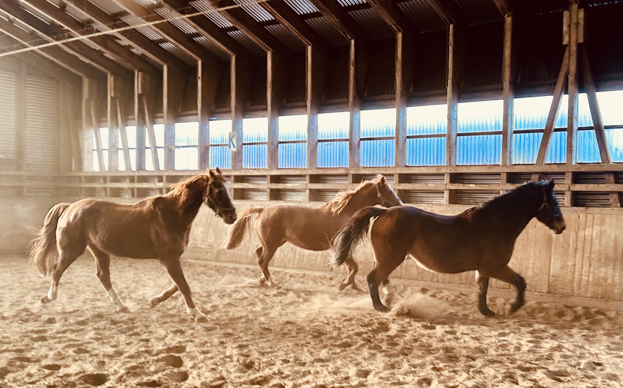 Neben den Auslauf auf den Paddocks geht es auch immer wieder zum Spielen in die Halle.