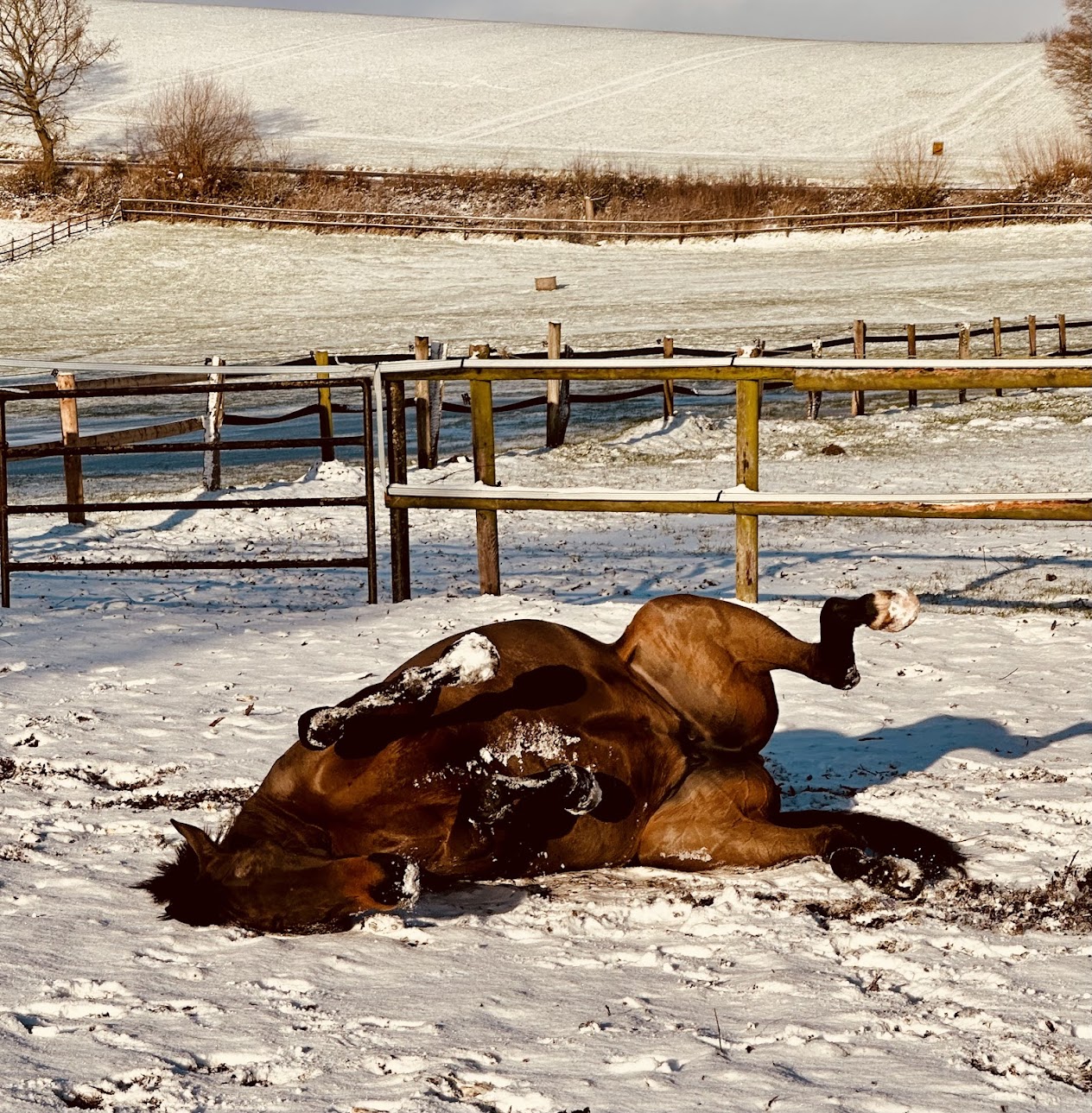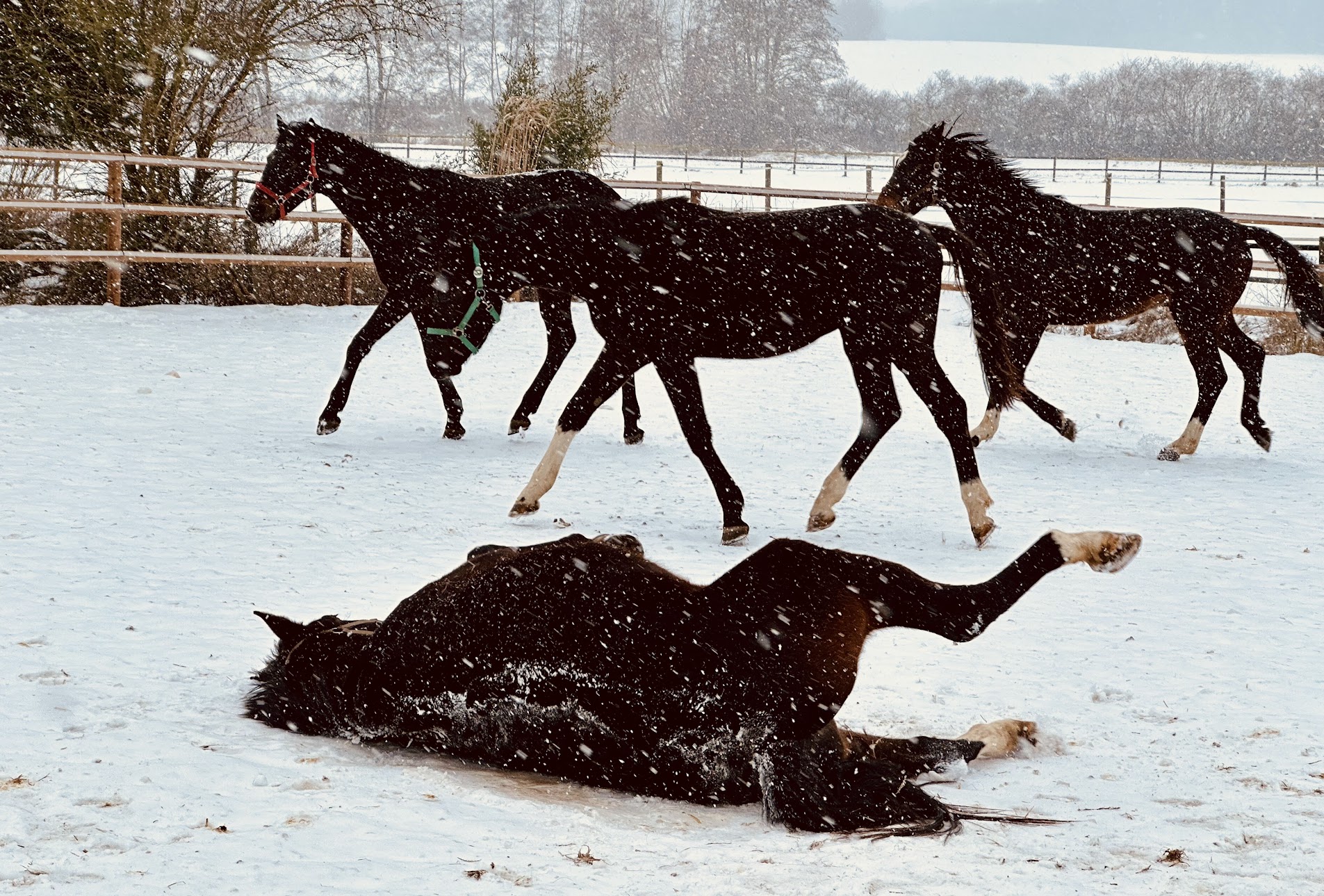 Winter bedeutet mehr Arbeit, aber es ist so schön zu sehen, wie die Pferde es lieben sich zu wälzen und im Schnee spielen und toben.