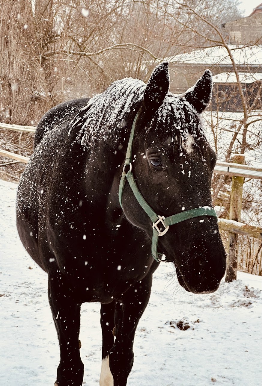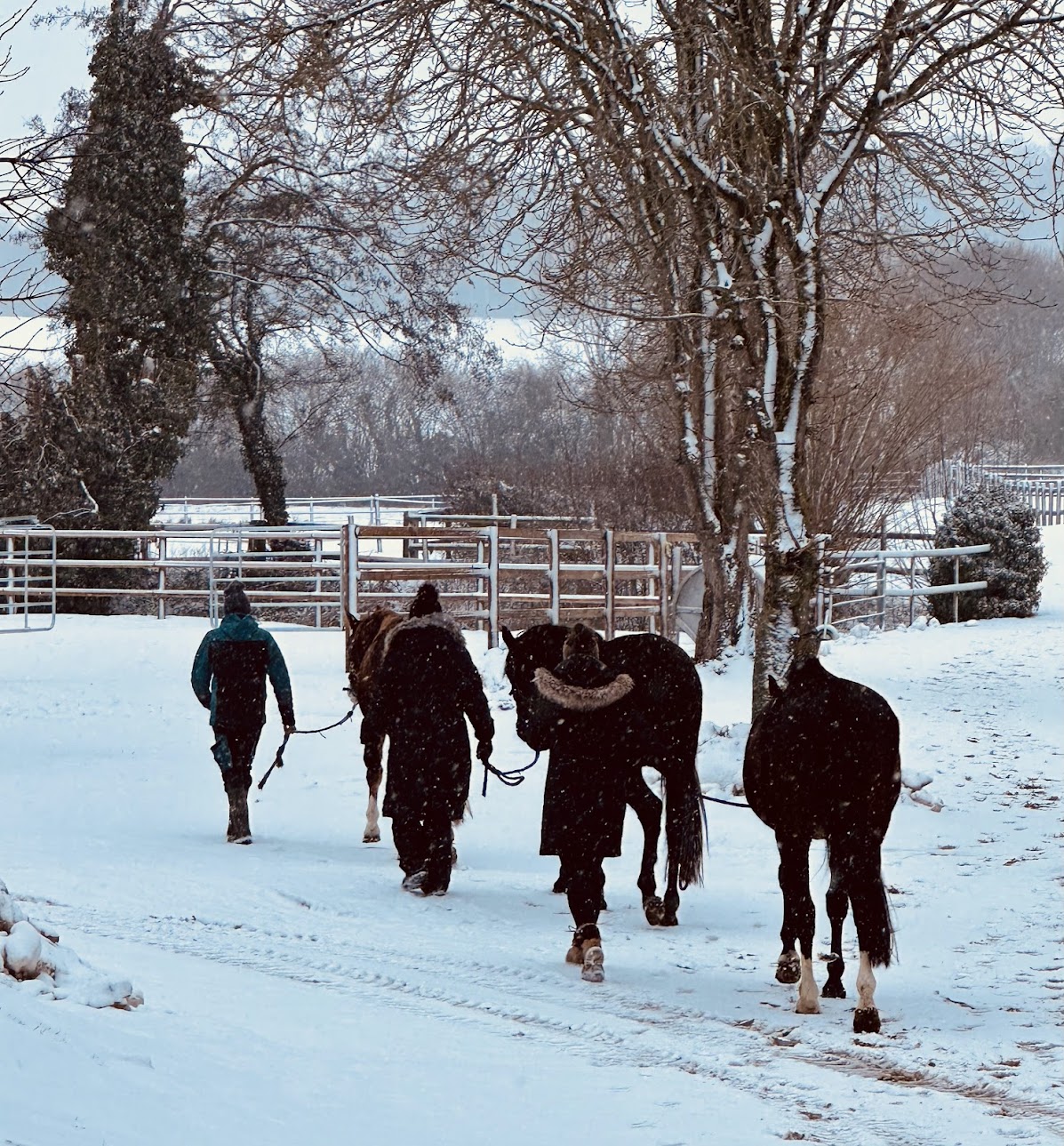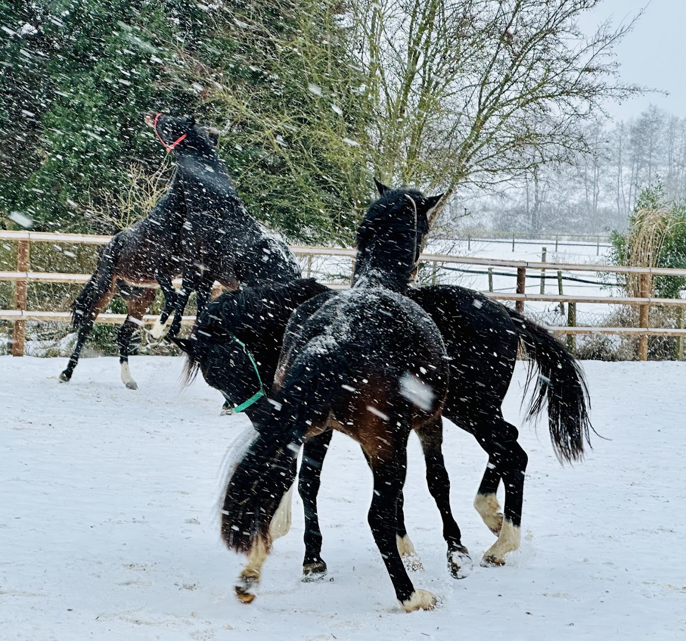 Diese Jahr gab es einen richtigen Winter. Zum Glück konnten wir den Hof immer frei halten und unsere Pferde täglich rausbringen, so dass alle trotz Kälte ausgeglichen waren und wir uns an dem Schnee erfreuen konnten.( Februar 2026)