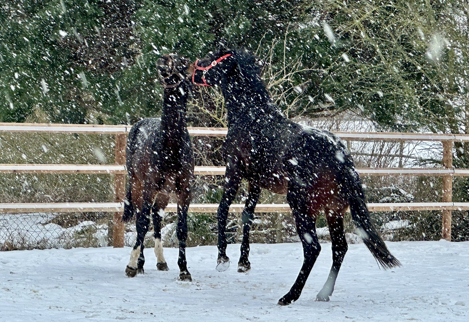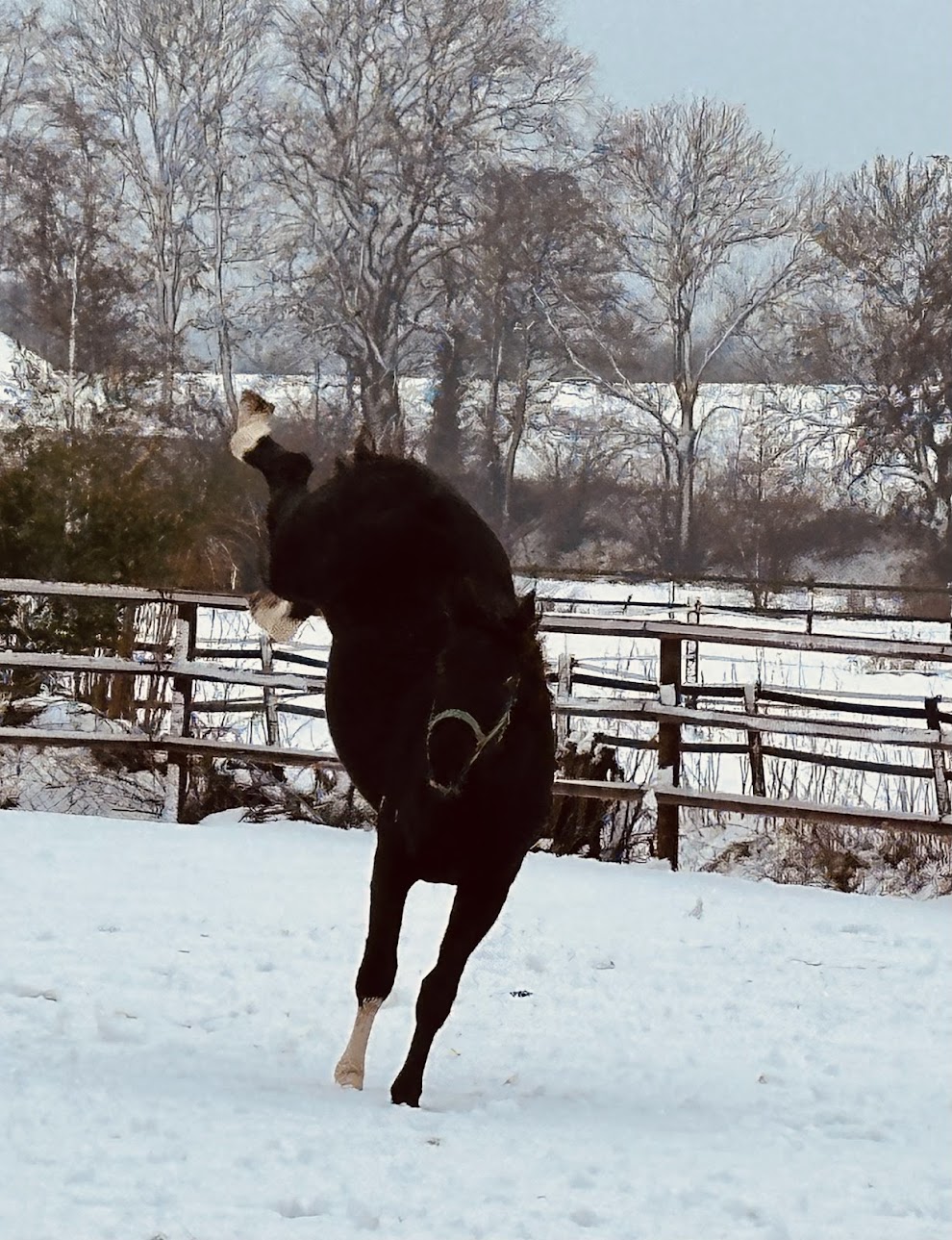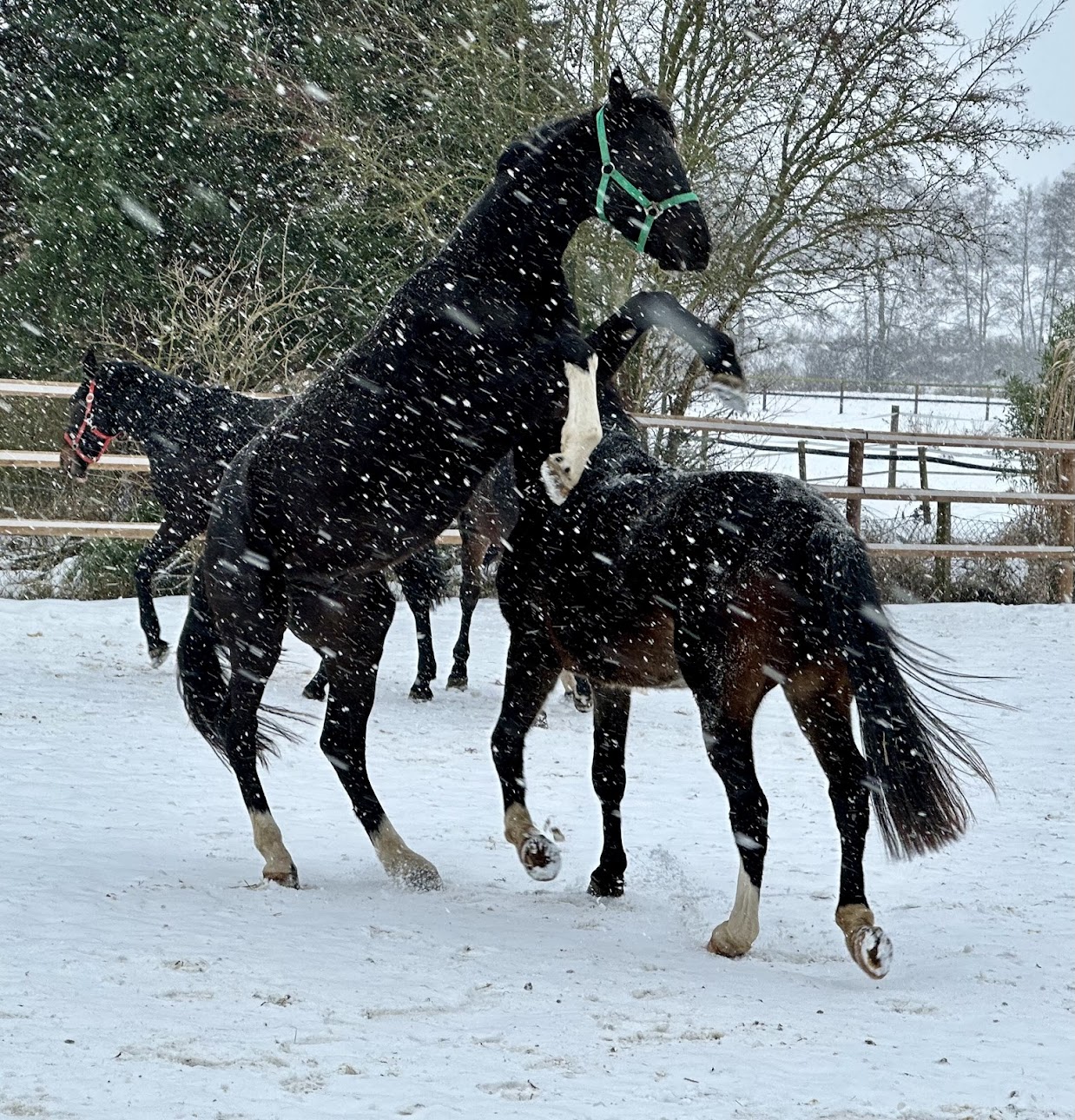Diese Jahr gab es einen richtigen Winter. Zum Glück konnten wir den Hof immer frei halten und unsere Pferde täglich rausbringen, so dass alle trotz Kälte ausgeglichen waren und wir uns an dem Schnee erfreuen konnten.( Februar 2026)