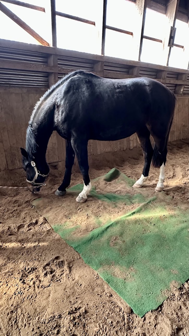 Heute ging es für alle über den grünen Teppich. Wahnsinn wie selbsverständlich sich unsere Pferde den begutachten. (März 26)