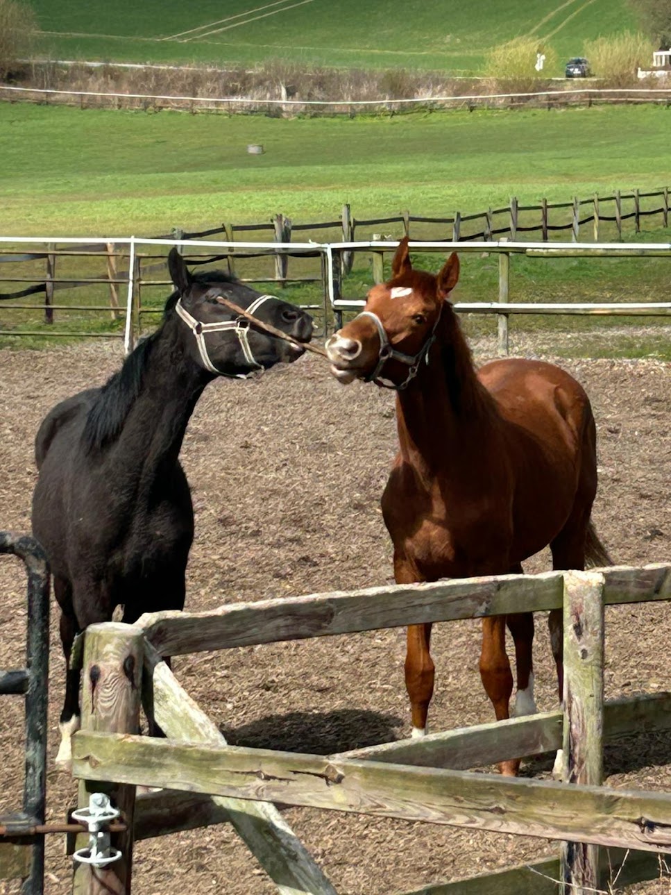 Überaus glücklich sind wir darüber, dass wir die 3 jährige Rappstute in sehr liebevolle und fördernde Hände vermitteln konnten. Wir durften die Anfänge starten und sind schon sehr auf ihre Entwicklung gespannt (März 26)