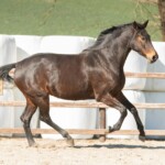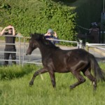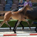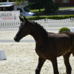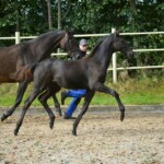 Unser Hengstfohlen von Escanto aus unserer Dahlia / Scolari in Vechta wusste sich zu zeigen. In allen drei Grundgangarten immer mit aktivem Hinterbein und durch den Körper sich bewegend.