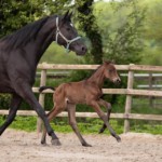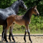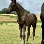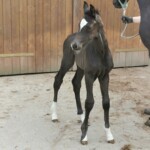 Wunderschönes Rappstutfohlen von D’avie, dem Doppelweltmeister, aus unserer Donaumond v. Fürst Romancier/Florencio/Welt Hit I und somit Halbschwester zum Prämienhengst Deodorio