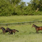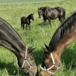 Auch die Wallache und Junghengste genießen das frische Gras.