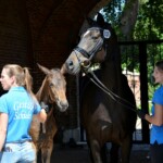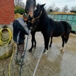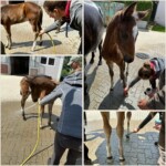 Heike ist mit vollem Elan dabei unsere Fohlen zu waschen, so lernen sie es gleich.