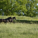 Unser Hengstfohlen von St. Emilion aus unserer Donauherz bei ihrem ersten Weidegang. ( Juni 2024)