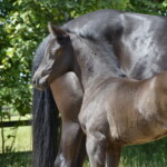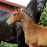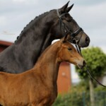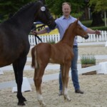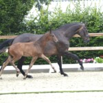 Wir freuen uns sehr darüber, dass unser wunderschönes Rappfohlen von Infantino aus unserer Donauherz in liebevolle, fördernde Hände kommt. Auch er begeisterte die Komission des Oldenburger Verbandes mit seinen schwungvollen Bewegungen und seinen sehr gut arbeitenden und tragenden Hinterbeinen und erhielt ebenfalls den Titel Elitefohlen mit zusätzlicher Auktionszulassung, sowie der Ernennung zum Siegerfohlen der NZB.