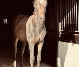 Hengstfohlen von Damaschino aus unserer Donaumond am 21.04.2024 geboren. Erhielt die Prämie beim Fohlenchampionat, wobei sein Antritt und aktives Hinterbein sehr gelobt wurden.